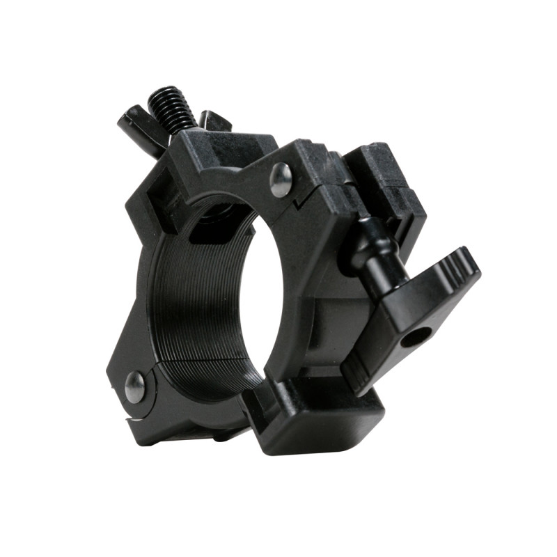The O Slim 2, like the ADJ O-Clamp, wraps around the entire2-inch truss pipe to avoid scuffing, scratching and denting of truss./n /n