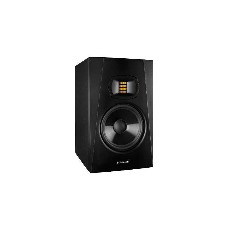 ACTIVE STUDIO MONITOR The T7V is a very affordable two-way near-field monitor optimized for small and medium control rooms. With its 7 "woofer, the bass response of the T7V extends to 39 Hz. The new U-ART tweeter, a revolutionary solution for use in recording and high resolution mixing for customers with small budgets, goes up to 25 kHz (something never seen in monitors of its price range) and is coupled to a precision waveguide (diffuser) with dispersion control and high frequency propagation capabilities. The waveguide (HPS) used in the flagship monitors of the S series of ADAM Audio produces a highly uniform dispersion of high frequencies which provides an incredibly broad "sweet spot" which frees us from being restricted to a very rigid mixing position while we work, which is very convenient and convenient since we do not have to be giving the site to other team members if they are necessary. An acoustic enclosure with an elegant beveled edge design with a rear bass reflex port, a very small base size which allows placement anywhere in your room, no matter how small it is or the work table where you have to place them, and it is equipped with DSP to control the crossover and the equalization and also has multiple analog connections. Equipped with a powerful class-D amplifier of 50 W for the woofer and of 20 W also class D for the U-ART tweeter, the T7V is capable of producing SPL's of up to 110 dB per pair. Excellent acoustic characteristics, small dimensions and an excellent price / performance ratio make this studio monitor perfectly suitable for use in small control rooms in music, video realization and broadcast production. And just in case you need to hear more bass, the T7V is compatible with the ADAM Sub8 subwoofers.