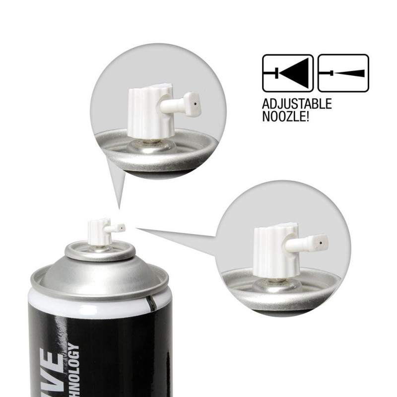 The amount of adhesive can be adjusted (high/medium/low) by a special valve. Depending on the material, an area of up to 4 m² can be bonded together. Temperature resistant from -20°C to +60°C.