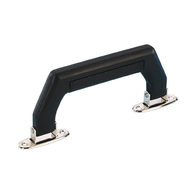 Lightweight case drop handle, black plastic with nickel end plates.
