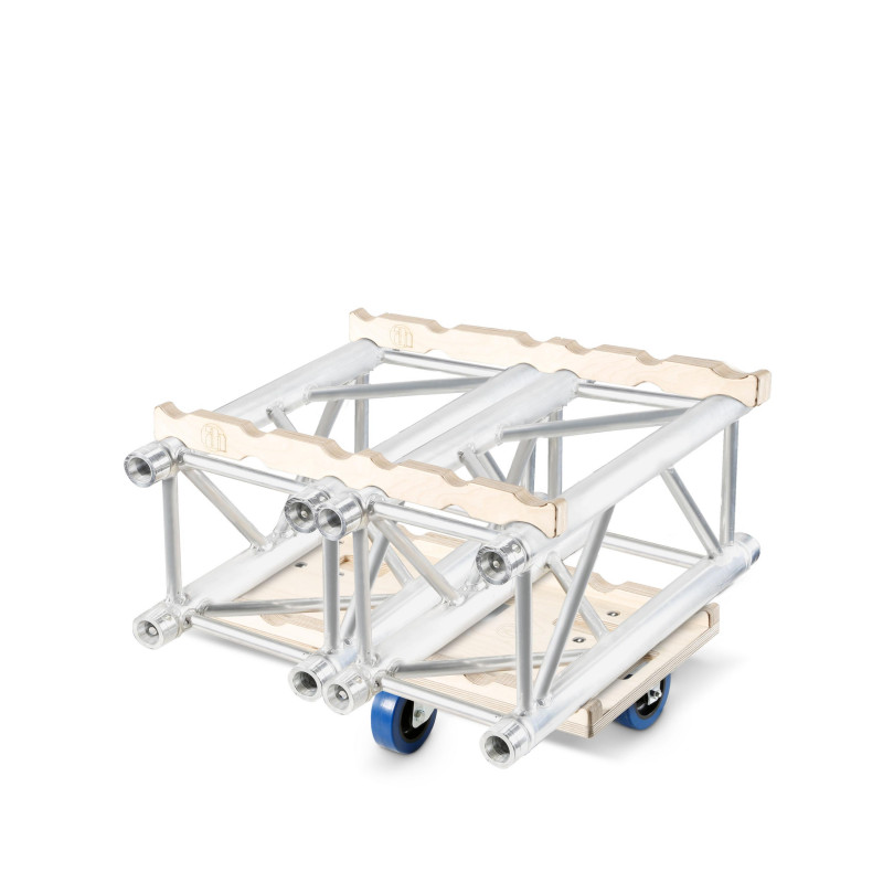 The Truss Stacker Roller Board System combined with the 'Interface Stacker 382100' enables easy and trouble-free stacking of trusses for safe transport. The birch plywood roller boards are available in versions with 2 x 2.3, 3 and 4 castors and are suitable for 3 and 4 point trusses.