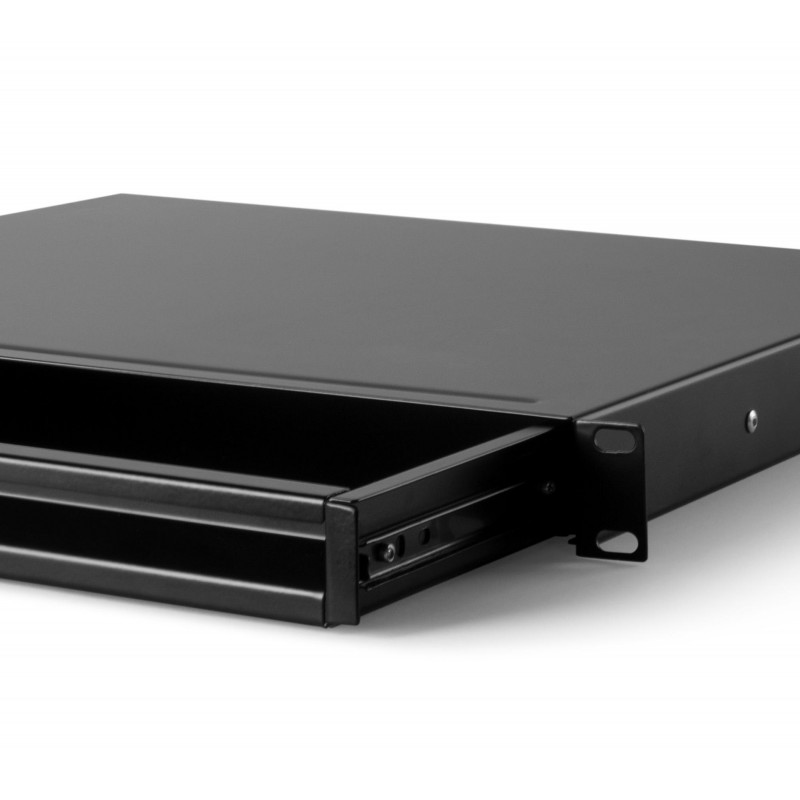 The ERGO is a very affordable rackmount drawer with heavy-duty 1.5 mm steel construction and easy, ergonomic operation. It integrates a recessed pull handle that runs the width of the drawer and a convenient push-to-close, pull-to-open latching mechanism with 1,5 kg pull force. This economy rack drawer has a black semi-gloss powder coating finish and 10 kg load capacity. It features smooth-running full extension ball bearing slides with front disconnect for easy drawer removal.