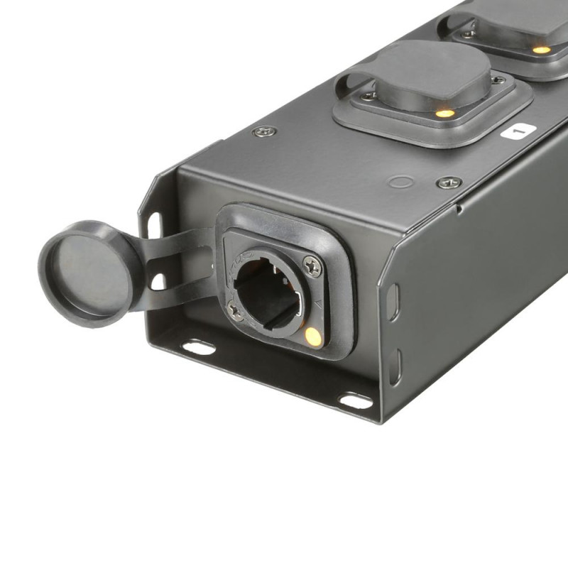 The PROPORT 4TT is ideal for tidy and specific power distribution on stage, on trusses and in equipment rigs. The robust metal housing features a Power Twist TR1 power input socket and 5 Power Twist TR1 power outs (2 on top of the distributor). 2 x M10 threaded inserts for mounting and fixed installation