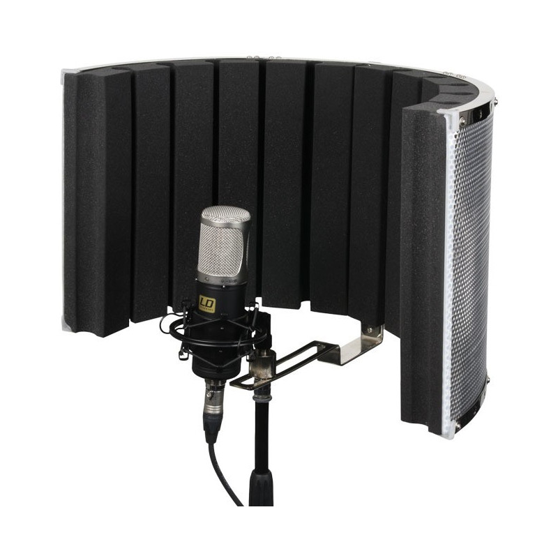 The RF1 is designed to help minimizing the undesirable hall reflections, noises and echos in order to obtain a very „dry“ vocal or instrumental recording signal. This filter allows good recording results even under unfavorable ambient conditions without having to take complicated measures to reproduce studio conditions or an acoustical insulation. It features a lightweight and rugged construction with high quality soundproofing materials and can be mounted on all conventional microphone stands.