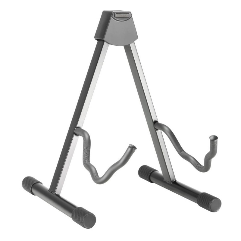 Universal guitar stand for acoustic and electric guitars with soft padding.
