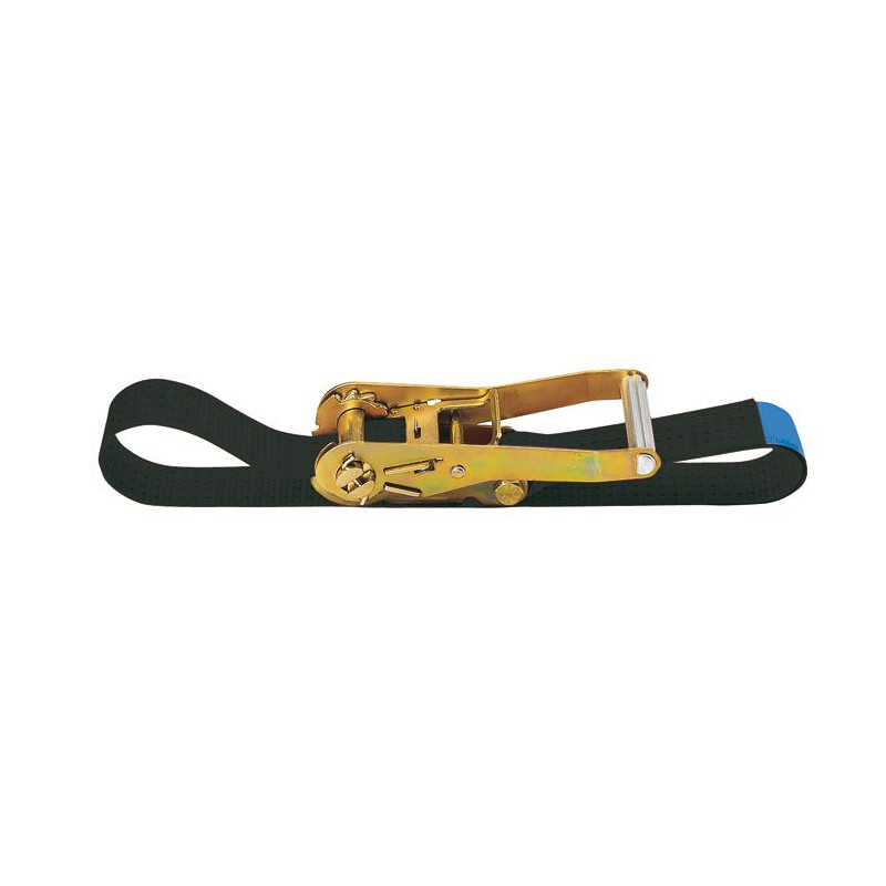 The lashings consist of high - tensile polyester (PES) webbing with an average tension of only 4% combined with a high quality push-ratchet. They come with the mandatory bluelabel, marked with length and admissible drag force. Manufactured in accordance with DIN60060/ VDI 2701, they are controlled by the Test-and Certification Authority (Technical Expert Committee) for traffic concerning quality and safety. Other types and lengths can be supplied anytime upon request on short notice.