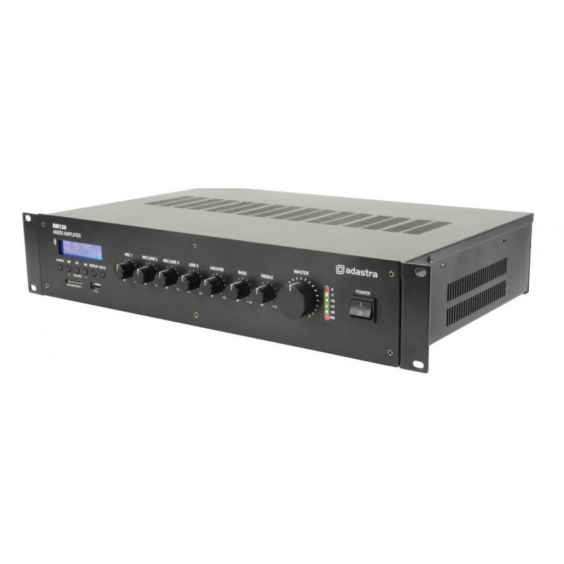100V Line Amplifiers with built-in 5 Channel mixer and USB / SD AUDIO PLAYER, FM TUNER AND BLUETOOTH RECEIVER