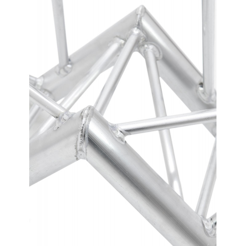 TRILOCK 6082 3-point truss systemTRILOCK 6082 is a 3-point truss system made of aluminum. The individual elements are connected via three cones, pivots and pins. TRILOCK 6082 is made of EN-AW 6082 T6 (AlMgSi1 T6) alloy for even higher loads. The advantage of the conical connection system is that the cones completely fit into the main chords so that highest load capacity is guaranteed. The Quick-Lock system enables fast, efficient and highly aesthetic assembly when the truss constructions are frequently assembled and dismantled. The three main chords are made of 50 mm aluminum tube with 2 mm wall thickness and offer a good relation between strength and weight. The braces have a diameter of 16 mm with 2 mm wall thickness and leave enought space for installing couplers, hooks and clamps. With 290 and 257 mm outer dimensions, TRILOCK 6082 is a stable truss system for higher loads and extended durability. This system is mainly designed for intense use in stage installations, fair installations, event installations but also for permanent installations in discotheques and theatres. Its polished surface makes this universal system a real eyecatcher. Due to its wide range of standard system lengths, corners, circles and accessory, this system is highly versatile and offers unlimited design possibilities. The production of this truss system is TUV-monitored. The load table as calculation base can be downloaded from the Internet before buying the product!Please note: this truss system must never be combined with other systems!