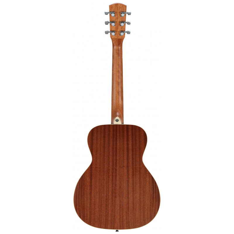 6 STRING ACOUSTIC GUITAR Acoustic guitar. Fir lid. Mahogany mast. Hoops and African mahogany bottom. Techwood Bridge. Techwood fretboard. PPS synthetic bone brow and saddle. Chrome plated pegs. 20 frets. Scale 23 15/32”. Natural Satin Finish. Includes cover.