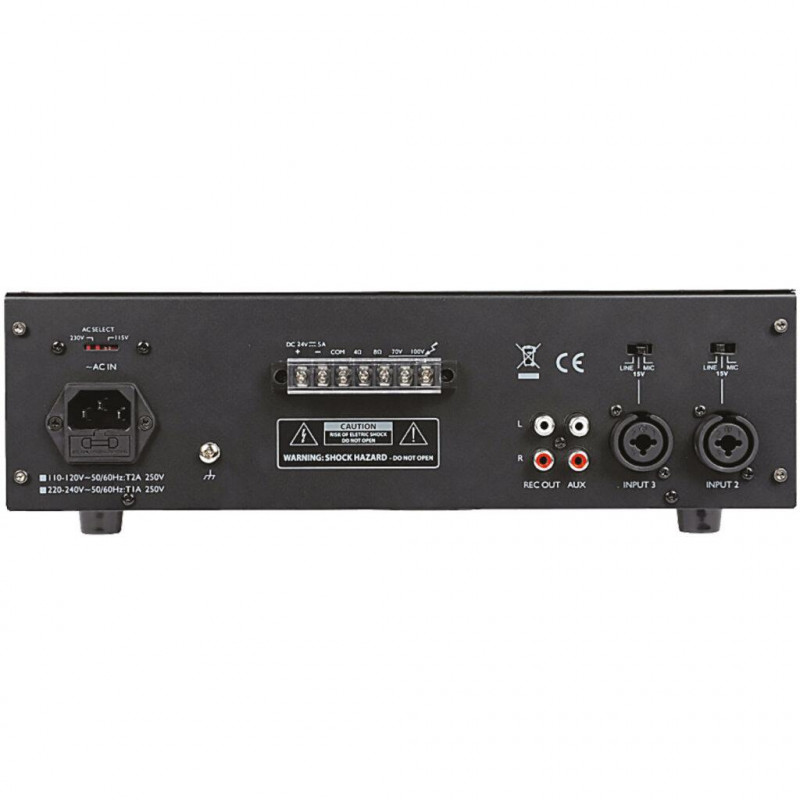 Outputs: 1x REC (rca) + 100V / 70V / 4-8 Ohm (terminals)