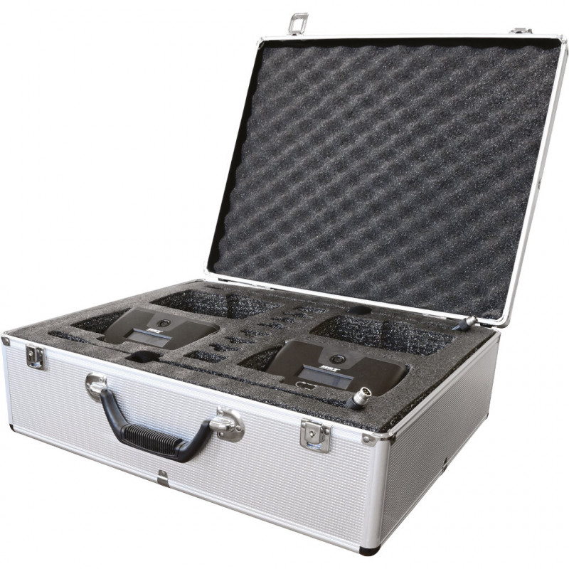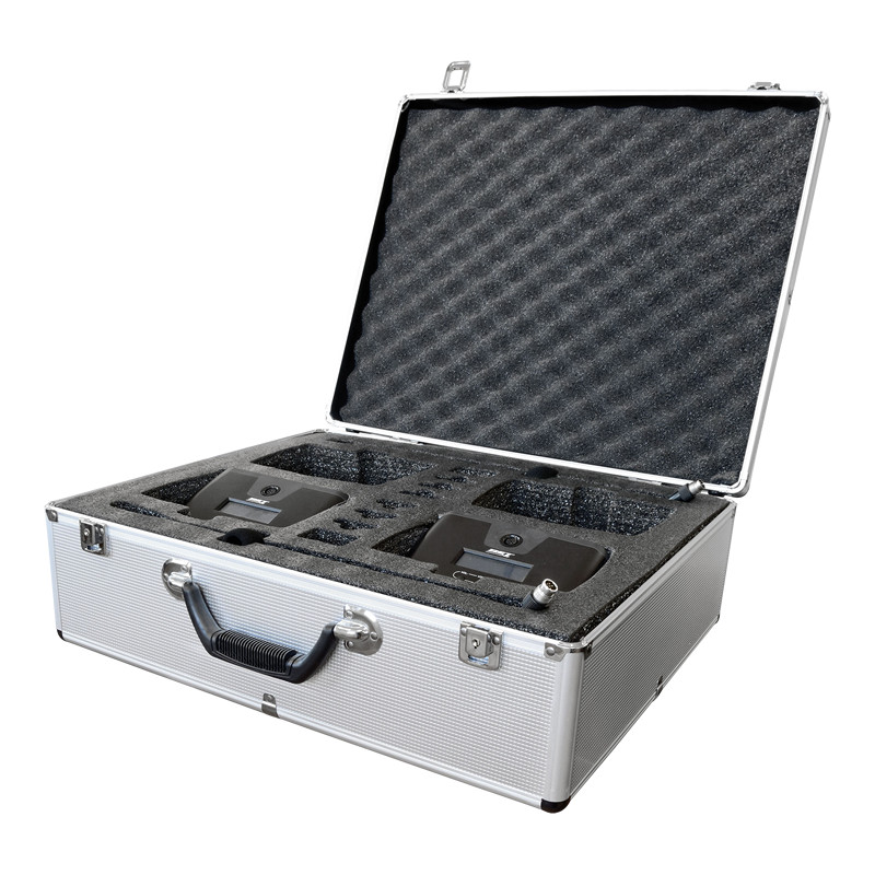 The HT-2288 conference system is the perfect solution for a mobile or fixed conference system where the use of cables is quite complicated. By combining multiple receivers (up to 16), this system can control up to 256 desktop microphones. Adding a video processor (optional) will activate the video auto tracking feature (i.e. the camera will automatically move towards the person who is speaking).
