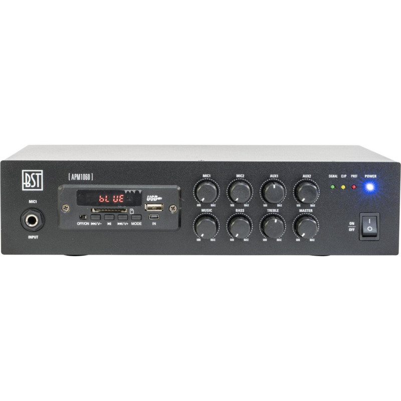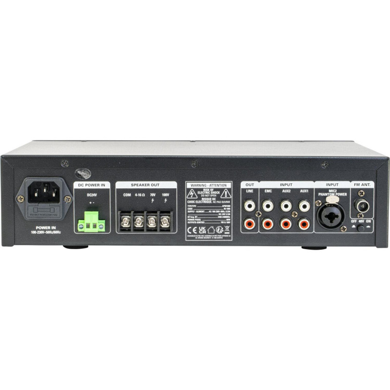 This amplifier-mixer is a perfect solution for small public address installations, offering a USB, SD, Bluetooth reader and an FM tuner in a small unit.