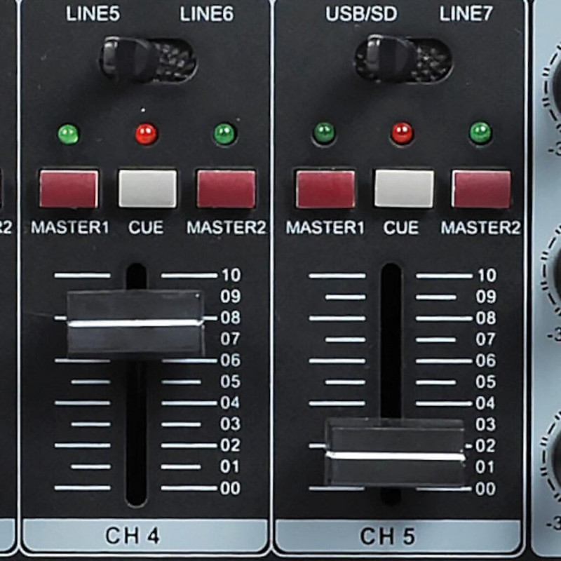 Outputs: Master A (XLR + rca) + Master B (rca) + Booth (rca) + Rec (rca)