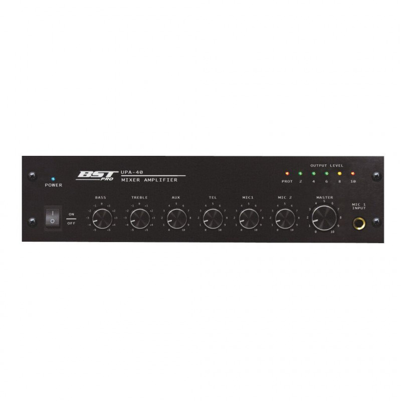 This compact-sized 100V line 40W mixer-amplifier is ideally suited for small shops.