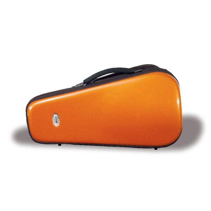 TRUMPET BAGS CASE Evolution I, Metalic Finish in Orange Weight: 1,600 Kg. Made with the following materials: Interior: Poliespan structure and high-density polyurethane foam. Interior upholstered with high quality velvet foam. The gel-coat has metallic particles in suspension. Exterior: Fiberglass structure with a gloss finish. The gel-coat has metallic particles in suspension. YKK zip closure. It incorporates two handles. Description: The case has two hangers fixed to the structure that have been ergonomically designed to carry it comfortably as a backpack, facilitating its transport by bike / motorcycle. Inside it has a watertight compartment for a straight type mute and another for two mouthpieces. On the outside there is a sheet music bag attached with capacity for a tablet / laptop.