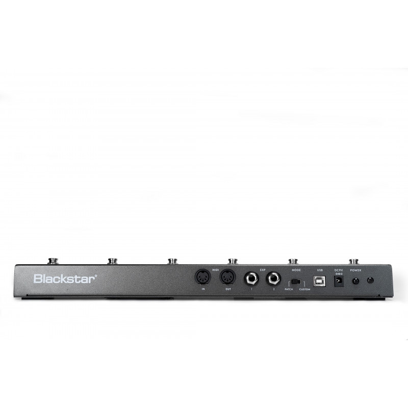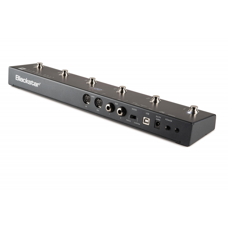MIDI FOOTSWITCH MIDI controller in pedalboard format Blackstar LIVE LOGIC. Live Logic's compact and versatile 6-Button MIDI Foot Controller provides quick and easy control of any MIDI hardware or software platform and/or plug-ins. MIDI over USB, assignable functions, and two expression pedal inputs make it the perfect MIDI control solution. It can also be used as your USB MIDI interface. Power it anywhere via USB, 9V battery or power supply and unlock its performance. 2 x expression pedal inputs Controls PC, CC, Note and Clock messages MIDI over USB for use with DAWs and plugins PP3 battery, 9V DC and USB bus powered Customizable MIDI messages via free software Program Change Messages 0-127 / 1-128 Stage visible multi-function LED display MIDI IN, MIDI OUT and USB