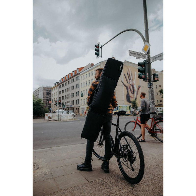 Carrying case for the Casio CDP-S100, CDP-S350, PX-S1000 and PX-S3000 digital pianos. Water repellent fabric. Storage pockets for music stand and SP-34 3-pedal unit. Backpack-type straps to carry it on the back, shoulder strap and handles.