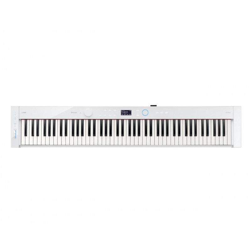 DIGITAL PIANO With its sophisticated design, uncompromising sound, authentic touch and innovative features, the Privia series has reimagined the way pianos fit into our lives. The Privia PX-S7000 models combine Casio's leading technology with elegant designs that allow you to experience a new degree of harmony with your lifestyle and surroundings. The Privia PX-S7000 comes in three colours, with built-in pedals and a stand that exquisitely embody the traditional piano aesthetic. With the PX-S7000, you can have the freedom to choose the style that best suits your lifestyle. Feature highlights: -New Smart Hybrid Hammer Action keyboard with new texture and spruce sides -4 speakers -Sound adjustment based on piano position -400 sounds -3 exclusive Privia Grand piano sounds -New collection of sounds inspired by famous styles and songs - Full fit acoustic simulator -DSP multi-effects with 25 effect types -Microphone input -Arpeggiator -Stand, stand and 3-pedal unit included -Fabric, texture of the speakers, pedals and support to match the color of the piano -Folding keyboard cover included -WU-BT10 Bluetooth MIDI/Audio adapter included -Compatible with Casio Music Space app -Dimensions: 1340mm wide x 903mm high x 449mm deep (including music stand) 1,340mm wide x 741mm high x 449mm deep (including music stand) -Weight: 29.1kg -White color