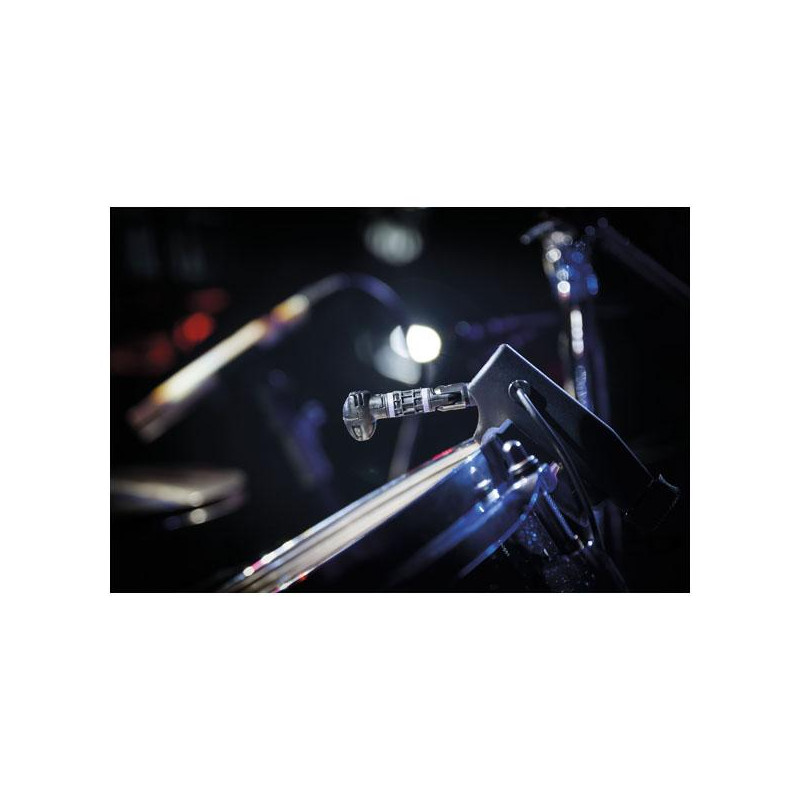 The DCLM-60 Miniature clip on condenser microphone is designed for the miking of Drums and percussion instruments. The mounting clamp is special designed to gently hold the ring of a wide variety of instruments. Its cardioid polar pattern design prevents interception of nearby instruments and ensures a very low feedback response on your stage. It’s flat response with a slight presence peak in the upper frequencies ensures natural and bright reproduction without colouration.