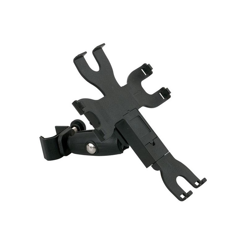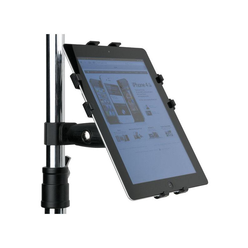This iPad holder has 2 swivel points to adjust the iPad in your desired position.