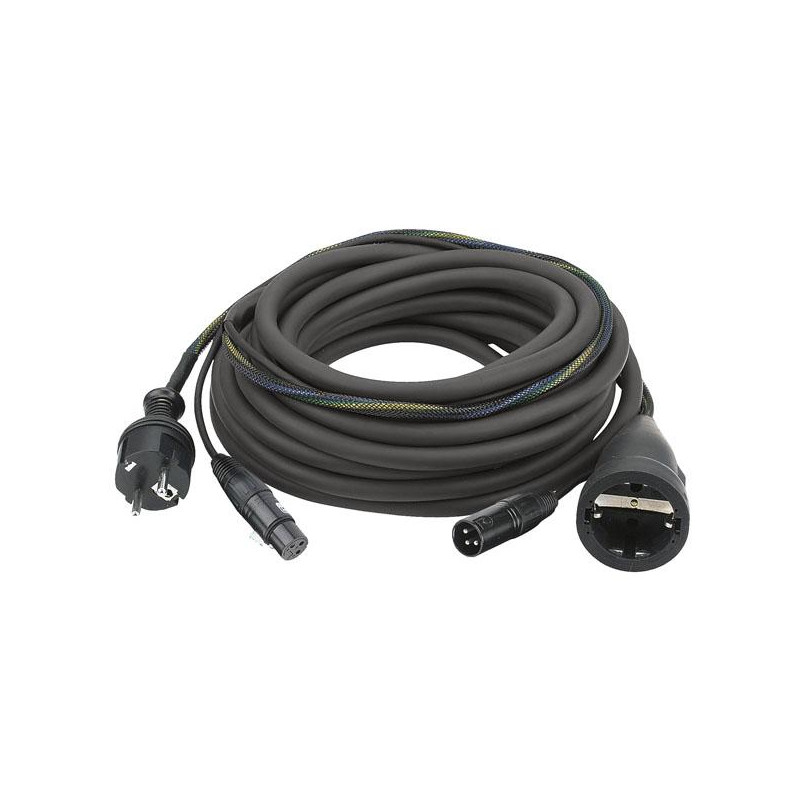 "Now finally available as prefabcable: power and signal incorporated in one single cable! No more cable-""mess"", just one cable to your active speaker, mixingconsole etc. Currently there are three different models available, all designed for use with audio equipment. All 3 models have xlr-m to xlr-f signal connector and different types of current-connectors. Please note that with a little work these cables can also be used with lightequipment; nevertheless you can expect to see more audio and lightsolutions coming up.