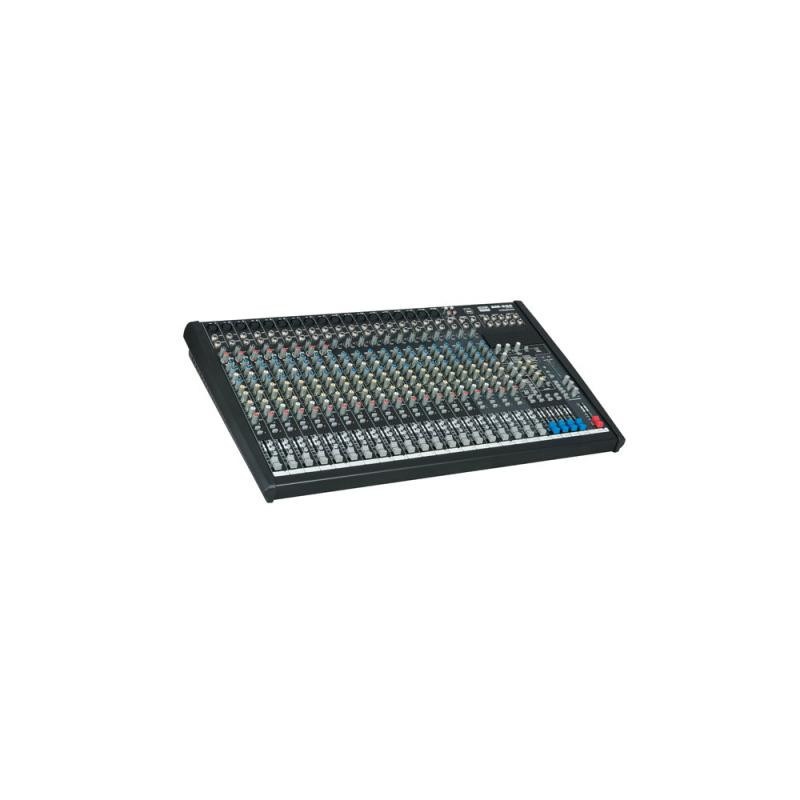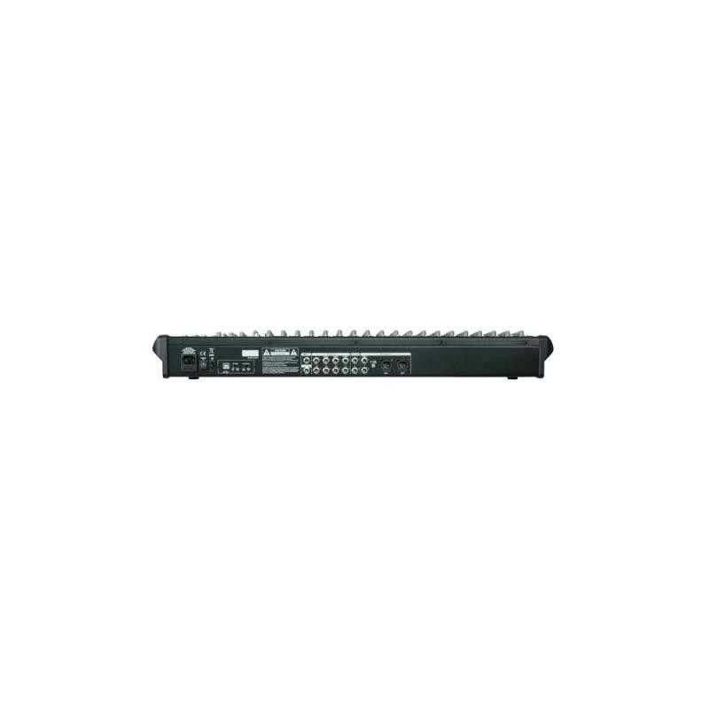 The GIG-244 CFX Mixing Console is packed with features that cannot be found in other consoles of it's size: 14 mono (provided with ultra low noise microphone pre amplifiers and Phantom Power at +48 Volt ) and 4 stereo input channels. Each of them are provided with a 3 band equalizer for HI, MID SWEEP and LOW controls, as well as 3 auxiliary control, build-in 24-bit DSP effect with 100 presets, highly accurate 12-segment bar graph meters and 2-track inputs assignable to main mix, control room/phones or group outputs.