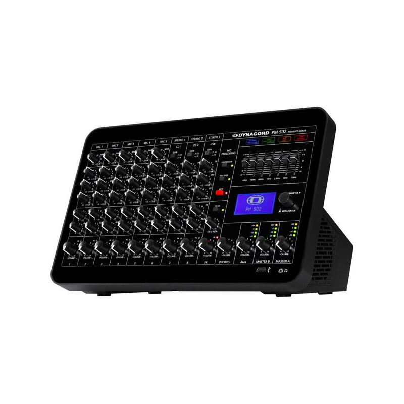 View larger SELF-AMPLIFIED MIXING TABLE 5-channel Mic / Line self-powered mixing console with compressor / limiter, talk-over function and Phantom 48 V DC general power selection, 3 channels, built-in MP3 and WAV audio file player, digital audio interface from 2in / 2out with 24-bit AD / DA conversion and 32 / 44.1 / 48 kHz sampling rate, 32 editable FX presets, 3 Master outputs with 7-band EQ, delay for Master-B (150msec / 50m) , 2x 450W RMS to 4 Class-D amplification module, micro-controlled power supply (100 - 240V), direct output without transformer for 100V line, complete set of protections, load output connectivity for direct and installation, optional rack mounting kit. 128 x 64 pixel LCD display. Consumption at 4 a of the maximum output power: 180W. Dimensions (H x W x D): 245 x 395 x 241.2 mm. Rack Mount Dimensions (H x W x D): 310.3 (7U) x 483 (19 ') x 177mm. Weight: 4.9 kg.