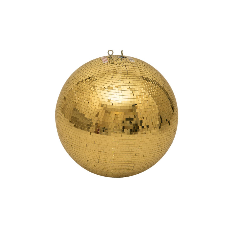 No party without a disco ball! Its simple design and affordable price make the disco ball a popular decoration classic used to create fascinating plays of light on the dance floor. Eurolite offers a wide range of disco balls in different colors and sizes.This model in professional quality has a diameter of 50 cm and is covered with countless small gold-colored mirrors (10 x 10 mm). The robust plastic core is covered with hundreds of small mirror facets and features a continuous shaft guaranteeing a high tensile strength. The mirror ball also includes two eyelets allowing for attaching both the fastening chain and the required fall protection. An additional motor can be used optionally to make the mirror ball rotate automatically. Suitable motors, the required mounting material and a transport case are available as accessories.