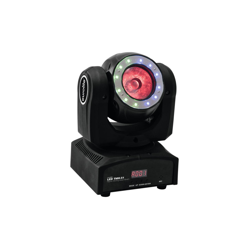 Mini-Beam with 60 W COB LED, RGBW color mixing and hypno ring in 4 segments