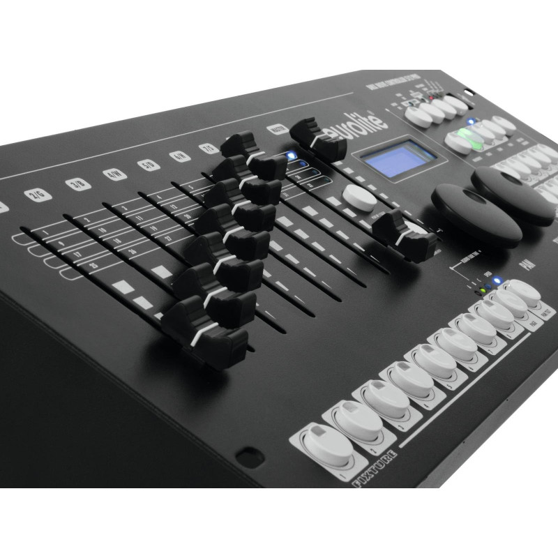 - 8 motorized DMX channel faders for user-friendly control