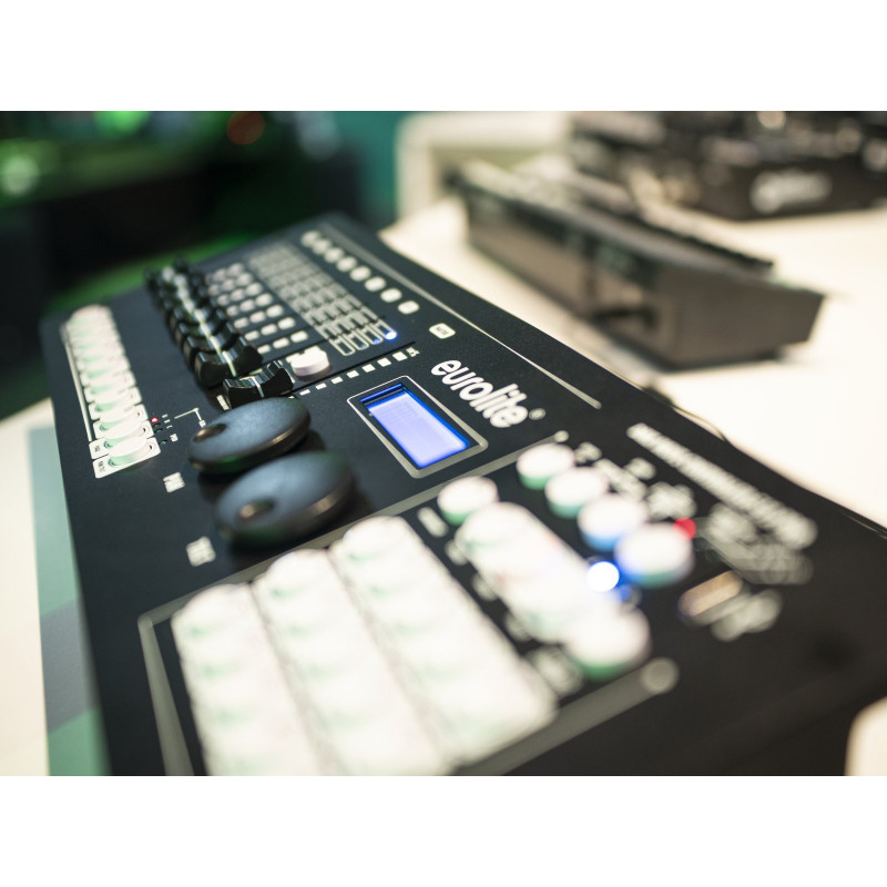 - Programmable 30 scenes/chases each with 485 cues distributed over 2 page/s