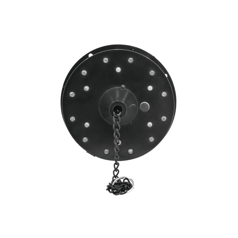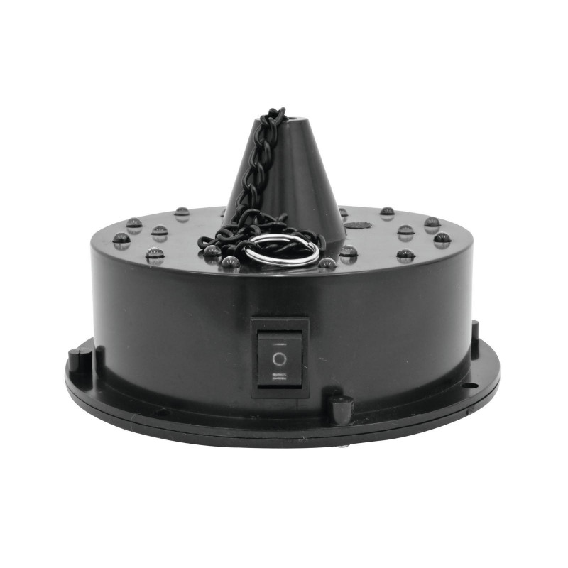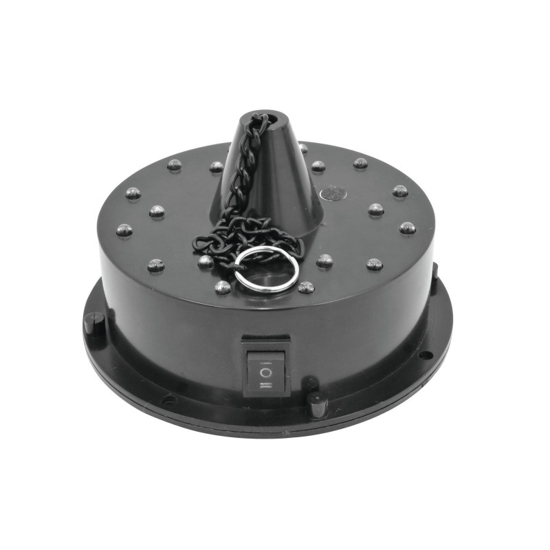 - Plastic housing with 18 LEDs ( 6x white, 4x green, 4x blue and 4x red) which illuminate the mirrorball from above