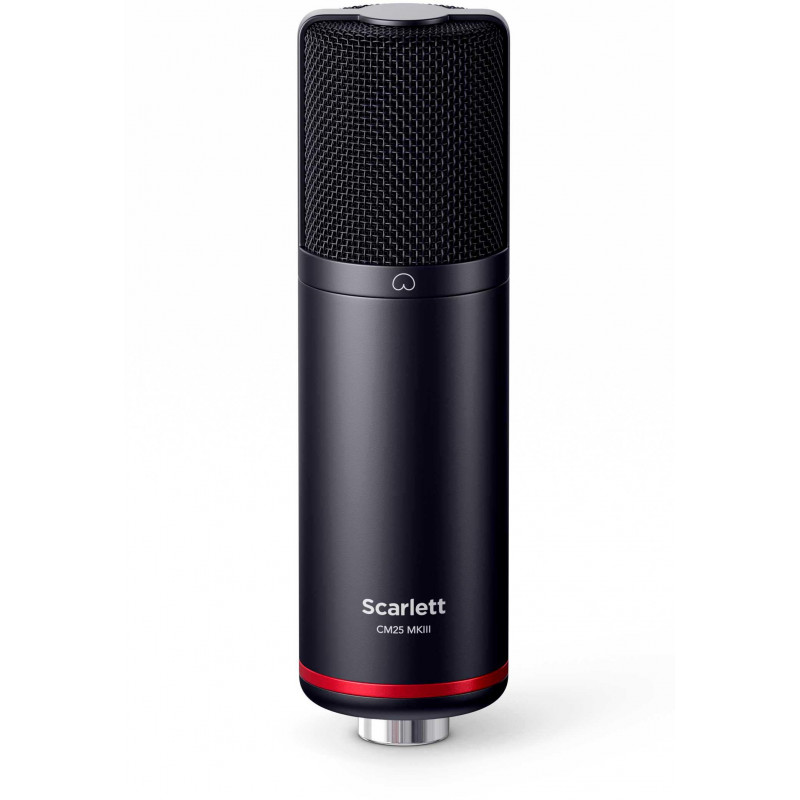 Everything is included in this complete package. Scarlett Solo Studio comes with our professional-grade CM25 MkIII condenser microphone and SH-450 closed-back headphones. The versatile CM25 MkIII is perfect for a variety of applications, but especially excels when capturing vocals and guitars thanks to its exceptional clarity and detail. The SH-450 studio headphones are the most precise studio headphones ever created by Focusrite, with cushioned ear cushions and a soft headband for a comfortable, fatigue-free experience during long sessions. If you need a microphone stand, don't worry, Focusrite includes a handy one made of cardboard, so you can get started quickly.