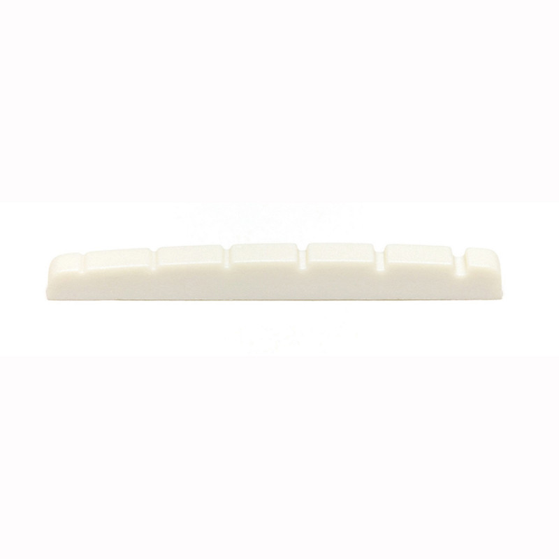Bone and ivory nuts and saddles have an inherent problem: they come from animals and are therefore inconsistent in their growth and cause soft or dead spots due to their natural grain. The TUSQ saddles, nuts and bridge pins are precision engineered under high pressure and heat, specifically to determine which frequencies are transferred to the top of the guitar (tone) and which frequencies remain on the strings (sustain). TUSQ is made from 100% organic polymers, contains no oil or animal by-products and each piece is perfect and identical. TUSQ offers you harmonically rich tones without the problems associated with natural materials.TUSQ offers a rich tone, a crystal clear bell highlighting all frequencies and a significant increase in harmonic content and sustain. The more harmonics, the more richness and character in your sound.