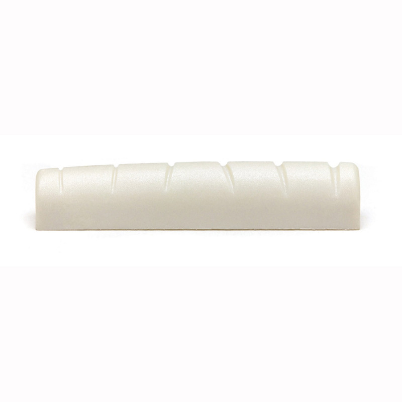 Bone and ivory nuts and saddles have an inherent problem: they come from animals and are therefore inconsistent in their growth and cause soft or dead spots due to their natural grain. The TUSQ saddles, nuts and bridge pins are precision engineered under high pressure and heat, specifically to determine which frequencies are transferred to the top of the guitar (tone) and which frequencies remain on the strings (sustain). TUSQ is made from 100% organic polymers, contains no oil or animal by-products and each piece is perfect and identical. TUSQ offers you harmonically rich tones without the problems associated with natural materials.TUSQ offers a rich tone, a crystal clear bell highlighting all frequencies and a significant increase in harmonic content and sustain. The more harmonics, the more richness and character in your sound.