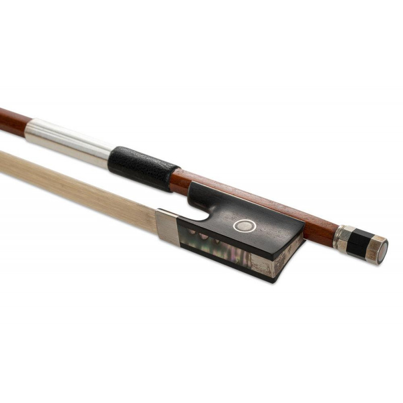 Ebony frog. Natural hair. Whalebone wrapping (imitation) with short thumb leather. Ebony frog with Parisian eyelet. Ebony slide with mother-of-pearl. Three-part silver leg with elaborate dot/rhombus inlay and mother-of-pearl eye. Silver screw. Stamped "Manufactum". Good quality.