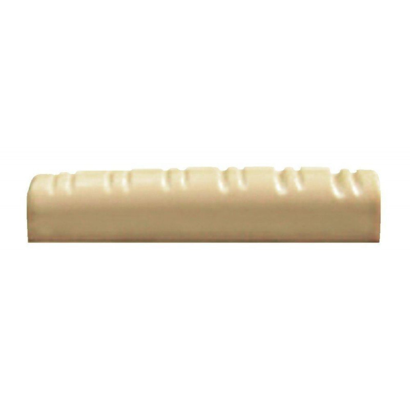 Pre-notched bonoid nuts for easy repair of worn out nuts. Synthetic material (similar TUSQ). with a high percentage of glas. Extremely hard. compact and very harmonic. Used f.ex. for VGS classic and acoustic guitars. Acoustic guitar 12 string 48 x 6 x 8 mm.