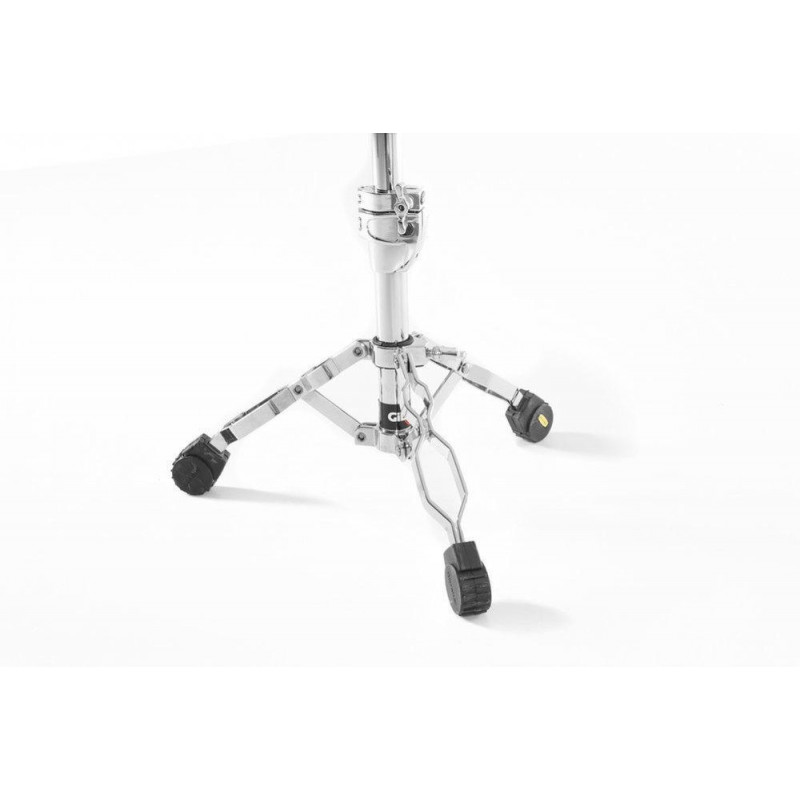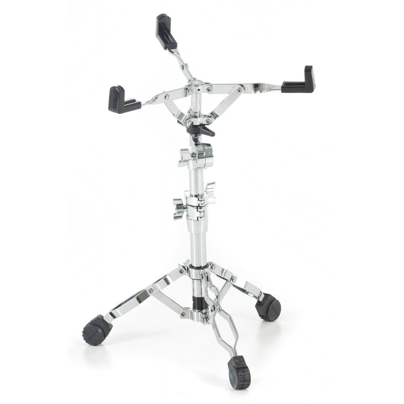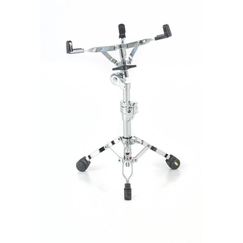 Snare stand for professional needs. Medium weight and solid. Double braced. Single extendable. Adjustable height. approx. 46 - 63 cm. With Memory Lock. Plastic adjustment screw. Grid angle tilter. For 10" - 14" snares.
