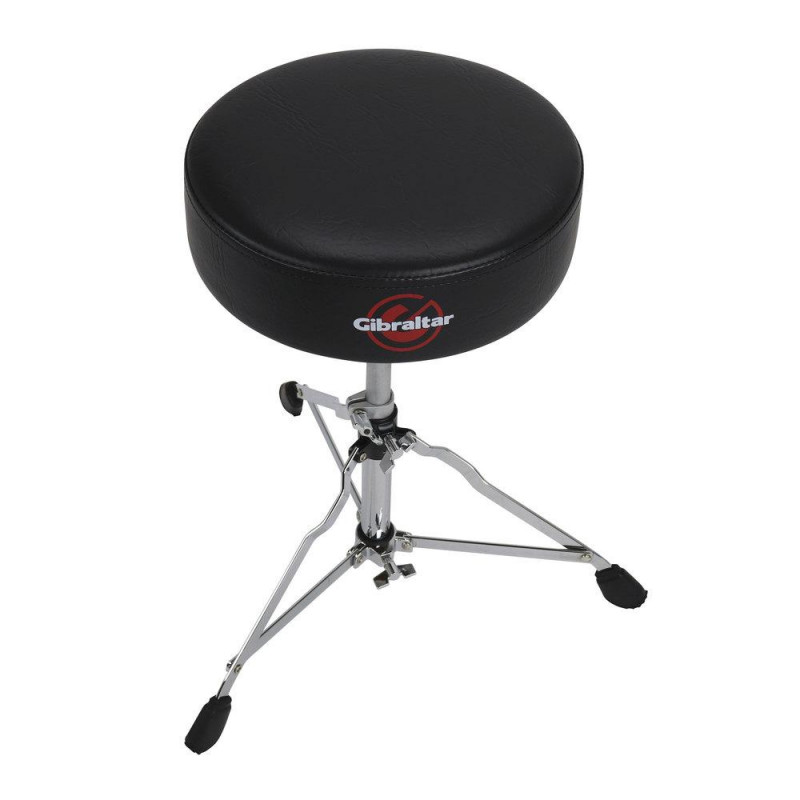 Simple drum stool for children and beginners . Very light. Vinyl seat. Diameter 33 cm / Padding 6 cm. Compact. single braced base (smller than model 5608) . Stepless height adjustment with memory lock .