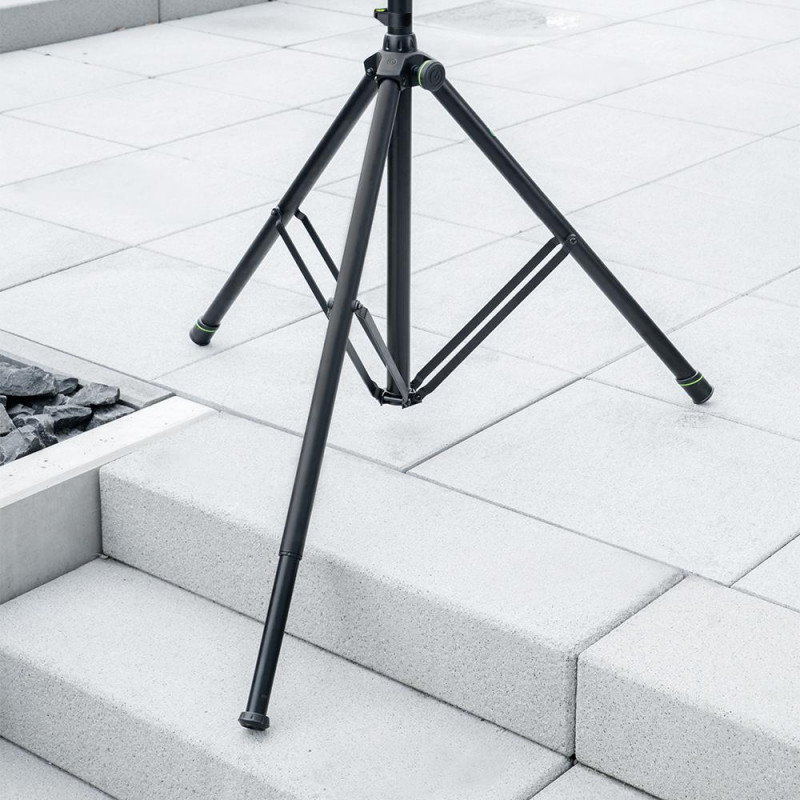 Place your speaker or lighting stands securely on uneven or slanted subfloors including steps and stairs. Gravity's VARI-LEG 01® leveling leg provides continuously variable leg length compensation up to 25 cm. It fits all leg tubes with 33 to 37 mm inner diameter, mounts quickly and easily without the need for tools and remains on the stand when no leveling is required.