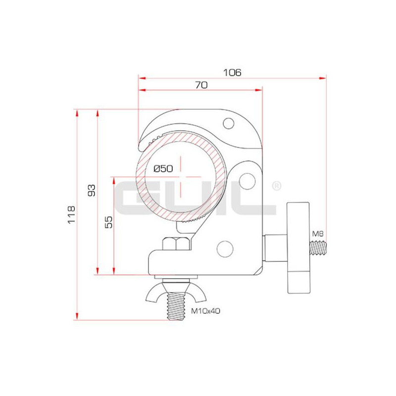 - Practical polyvalent aluminum clamp, it is used in multiple sectors (construction, show, etc).
