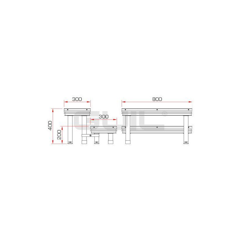 The ECT20-40 ladder is composed of two modular steps with a footprint of 30 x 80 cm (net weight of the step, frame and board game: 9 Kg.) And two sets of 4 legs.