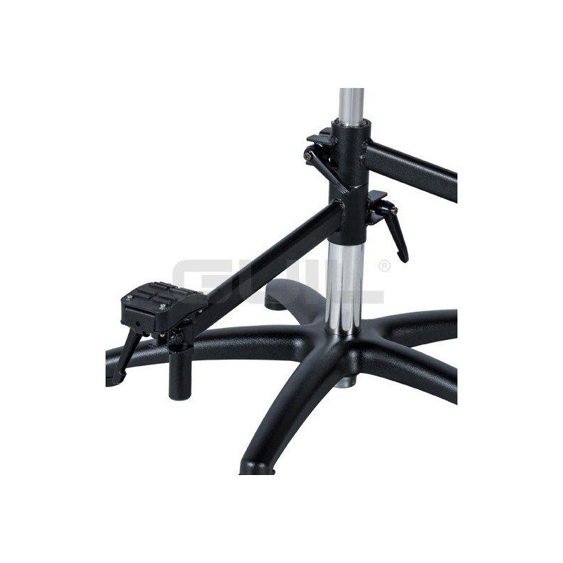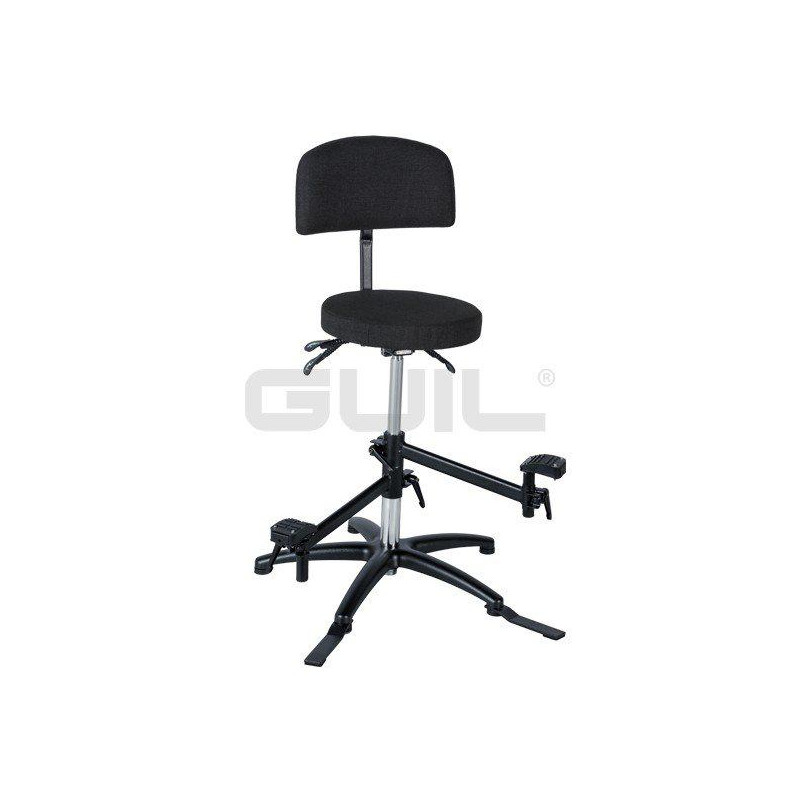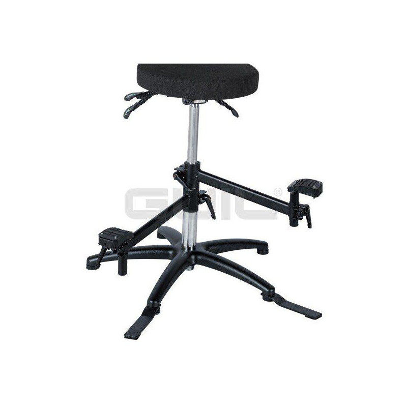 > Footrest: Each of the two swivel footrests is regulated independently; both in height along the chromed mast, and the adjustment of the height of the footrest, thus allowing its adaptation to the position of legs preferred by the musician.