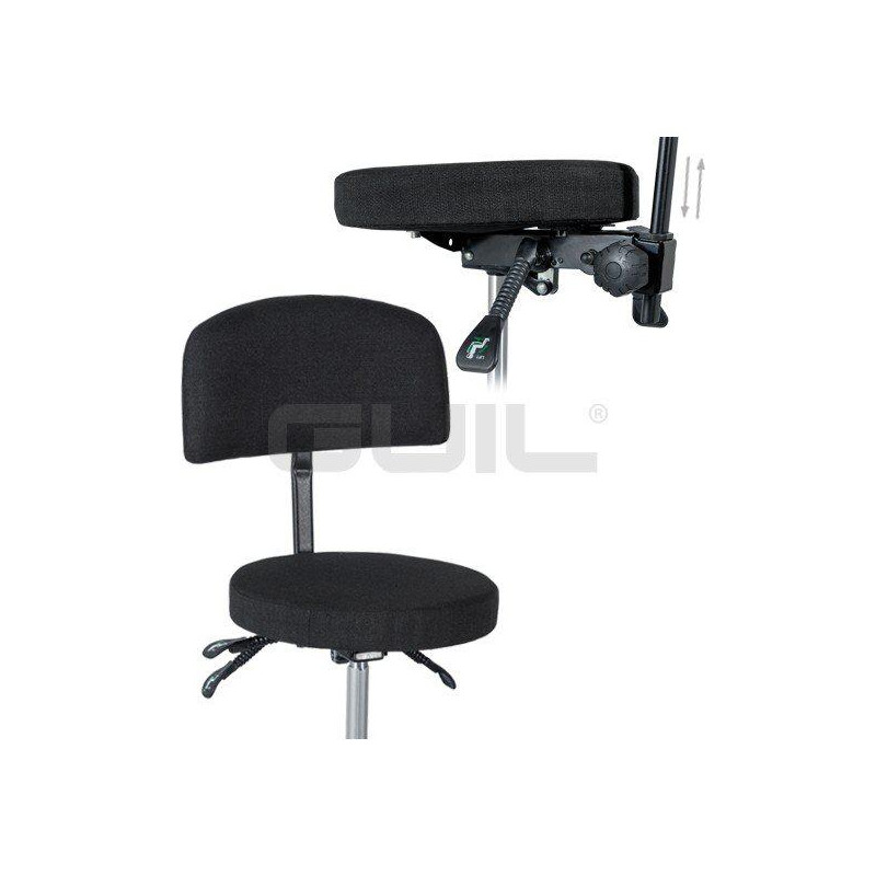 > Ergonomic backrest: reclining and removable, it is adjusted in height and adjusted in inclination by means of an independent system of regulation and also automatically tilts to adapt to the unique posture of each musician.