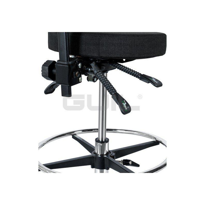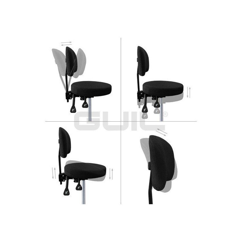 - Ergonomic chair for conductor and percussionist with adjustable back and round seat.