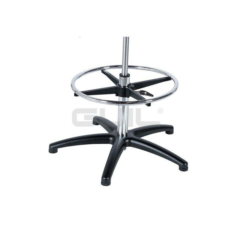 - Its five-leg base is made of aluminum with a black finish; The central mast and the footrest have a polished chrome finish, combining an elegant design, with maximum stability and resistance.
