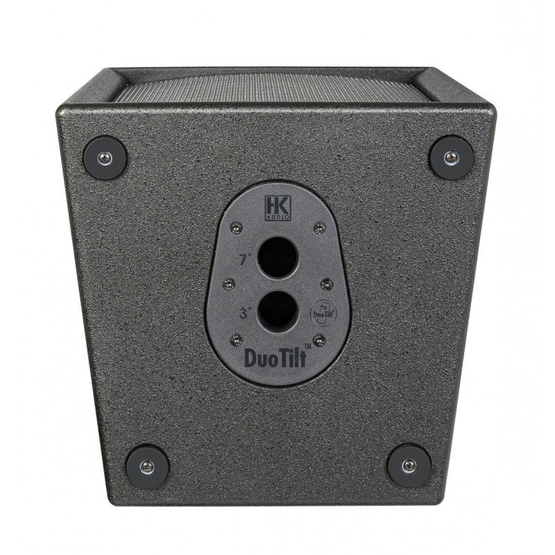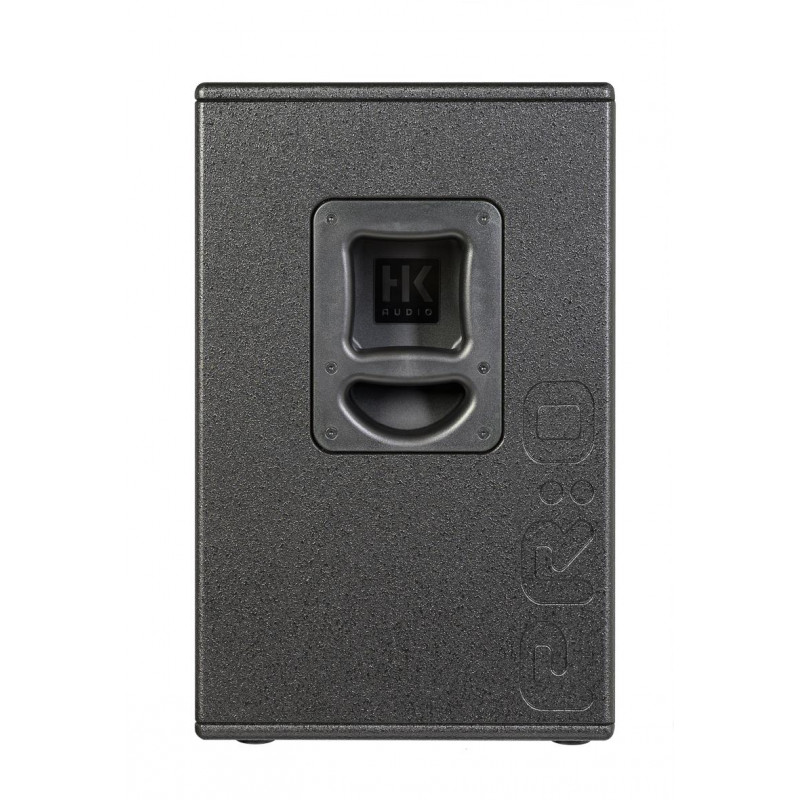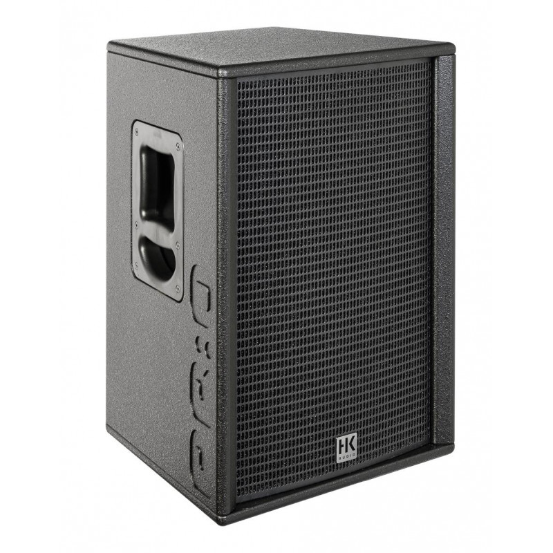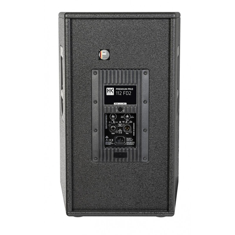 AMPLIFIED PA LOUDSPEAKER Compact 2-way full range self-powered system with internal digital processor.Low resonance MDF acoustic enclosure trapezoidal design with multiple angles (vertical and horizontal orientation). Applications: multifunctional, ideal for portable sound reinforcement, live music installations, stage monitor, DJ sessions and various events. It works as a stand-alone speaker and is compatible with the PREMIUM PR:O series. DSP-controlled frequency response optimization. Practical and intuitive access to the different settings. LF: 1 x 12” cone loudspeaker. HF: 1 x 1” motor. Frequency response: 80 Hz – 16 kHz (+/- 3 dB), 69 Hz – 18 kHz (-10 dB). Amplifier: class D (bi-amplified). Power: 1200W. Active protection circuit: peak and RMS limiters (separate for HF and LMF). SPL Max.: 133 dB peak. Coverage angle: 90° x 55° (constant directivity diffuser). Crossover Frequency: 2.5 kHz FIR X-Over with 48 dB/Oct., active. Input Connectors: 1 x Balanced XLR Combo. Output Connectors: 1 x balanced XLR (pass thru). Sensitivity: Mic/Line. Attachment Points: 3 x M8, 3/7° Duotilt, 1 x SingleGrip Carry Handle, 1 x MultiGrip Carry Handle. New 1.5mm metal grille with acoustic foam on the back. WxHxD: 41 x 59.5 x 31 cm. Weight: 17.9kg. Finish: Black acrylic enamel.