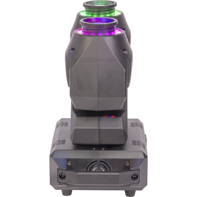 This double moving head will fill the entire room with all its effects, particularly rich in colours, thanks to its 2 x 12 SMD5050 RGB LEDs for the Wash effect on one side, and two powerful 30W 4-in-1 RGBW LEDs for the Beam effect, on the other hand. Very dynamic thanks to infinite PAN rotation.
