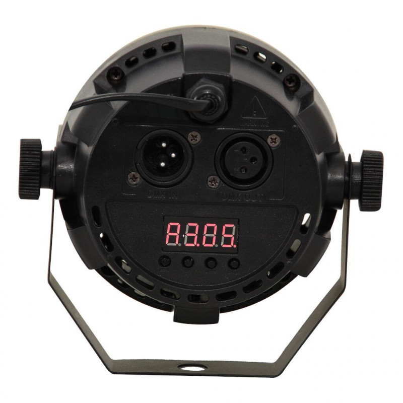 PAR projector with 12 red-green-blue LEDs that works without the need for a DMX controller.