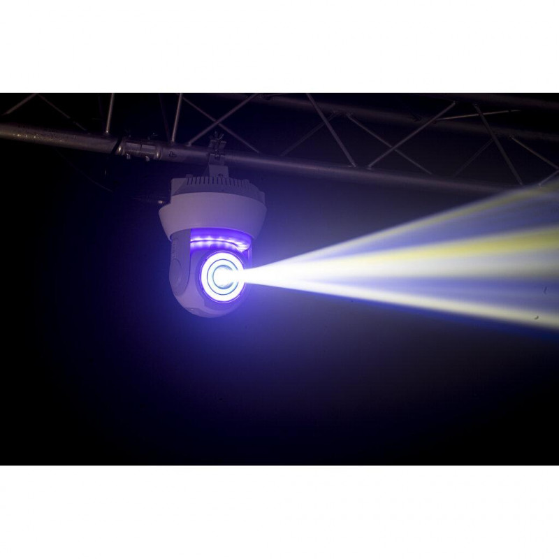 Mobile head design and compact, with very good finishes. This compact moving head combines 3 lighting effects in a single device. Thanks to its 30W central Spot, the head projects powerful and precise multi-coloured Gobos. The 6 RGBW 4-in-1 LEDs create a Wash effect and also create Show effects thanks to its light ring. It's small, fast, quiet and powerful. This equipment will easily adapt to any type of event and application.